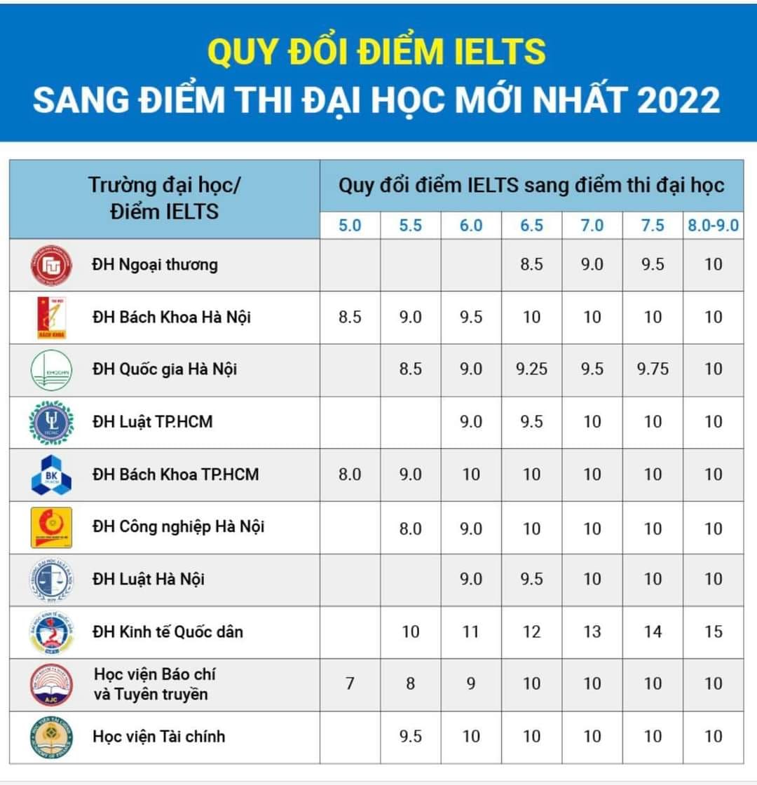 Nhìn vào bảng quy đổi ielts thì thấy trường Ngoại thương, Quốc gia và Kinh tế quy đổi rất sát vì đây là những trường thuộc top 1 và khối kinh tế rất chú trọng Tiếng Anh , những trường còn lại chủ yếu là khối kỹ thuật như Bách khoa… chỉ đề cao toán lý. Những bạn đã chú trọng vào học ielts hầu như là theo khối kinh tế và nhắm vào Ngoại thương và Kinh tế. ..Vì vậy, những bạn đã có ielts 7.0 – 8.5 nhắm vào Kinh tế và Ngoại thương thì cũng chả thiệt chút nào.