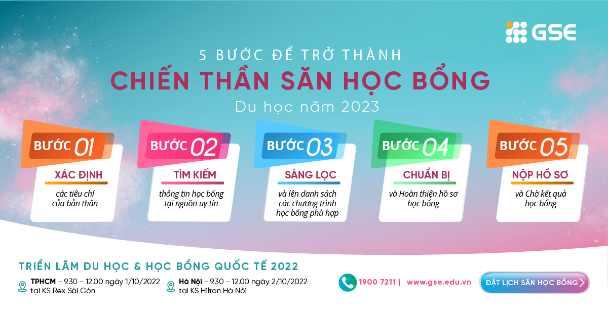 Để được nhận danh sách học bổng đầy đủ và mới nhất, hãy tham gia ngay Triển Lãm Du Học & Học bổng Quốc Tế 2022 trong tháng 10/2022 cùng Du học GSE: