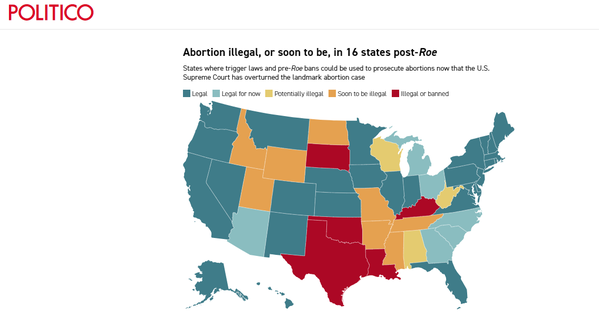 Từ năm 1973, nước Mỹ có một đạo luật (được gọi là phán quyết Roe v. Wade) trao quyền phá thai cho mọi người trên đất Mỹ. Tuy nhiên, một ngày trước, tức ngày 24/6/2022, Tòa Án Tối Cao của Mỹ đã tước đi quyền này. Điều này không có nghĩa phá thai trở nên bất hợp pháp, mà ngay lập tức cho phép mỗi tiểu bang quyết định chính sách về phá thai; những bang cấp tiến tiếp tục nhấn mạnh quyền nạo phá thai; những bang bảo thủ củng cố hoặc tạo luật mới cấm hoàn toàn nạo phá thai.