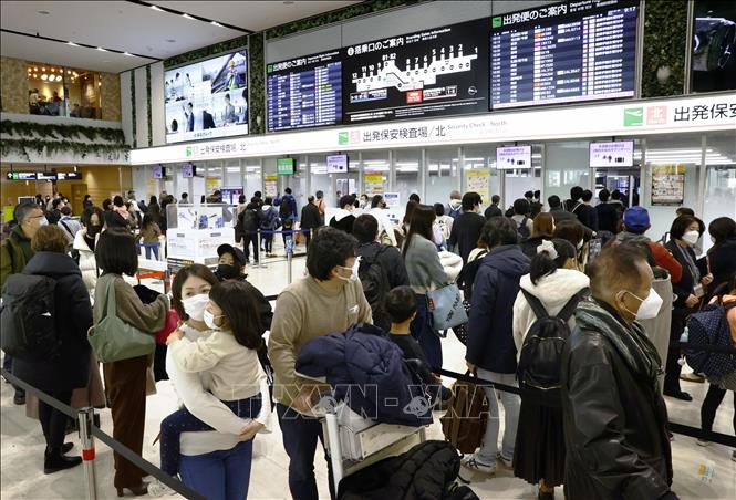 Hành khách tại sân bay Fukuoka, Nhật Bản ngày 3/1/2022. Ảnh tư liệu: Kyodo/TTXVN