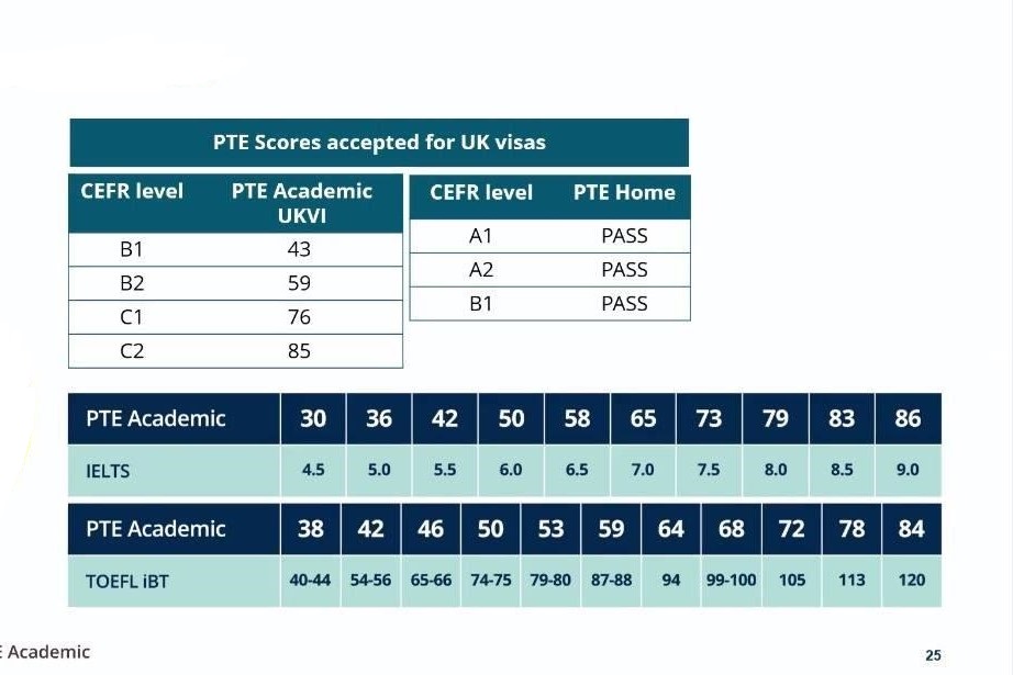 Bảng so sánh điểm PTE Academic UKVI với các kỳ thi khác