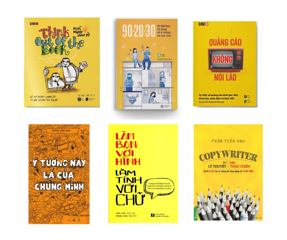 Còn một vài quyển khác nữa như: Ý tưởng này là của chúng mình (Huỳnh Vĩnh Sơn), Làm bạn với hình làm tình với chữ (Bút Chì), Copywriter Từ Lý Thuyết Đến Thực Chiến (Trần Tuấn Anh) nhưng các đầu sách này trên thị trường số lượng còn rất ít.