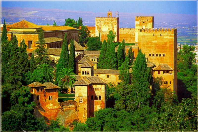Quần thể cung điện Alhambra là dấu tích cuối cùng của người Moor tại châu Âu trong thời kỳ xâm chiếm bán đảo Iberia. Alhambra bao gồm các hạng mục chính là pháo đài Alcazaba, cung điện Palacios Nazaries. Charles V và khu vườn Generalife xanh mướt. Vào thời kỳ xây dựng những kiến trúc này, người Moor đang theo đạo Hồi nên phong cách kiến trúc thời kỳ này mang đậm dấu ấn mái vòm của những cung điện Ả Rập. Nhìn từ xa, quần thể kiến trúc này có vẻ bí ẩn, cố cung nhưng bên trong lại ẩn chứa nhiều điều lý thú. Bên cạnh đó, pháo đài Alcazaba là công trình khổng lồ trên đỉnh ngọn đồi, có tầm nhìn ngoạn mục bao quát toàn bộ thành phố và dãy núi Sierra Nevada. Đây được coi là phần lâu đời nhất của Alhambra với những bức tường tàn tích một thời huy hoàng của đế chế Hồi giáo. Ngày nay, những công trình như trại lính, phòng tắm trong khuôn viên pháo đài không còn nguyên vẹn, chỉ còn lại chút dấu tích nhưng cũng đủ thú vị cho chuyến tham quan của bạn.